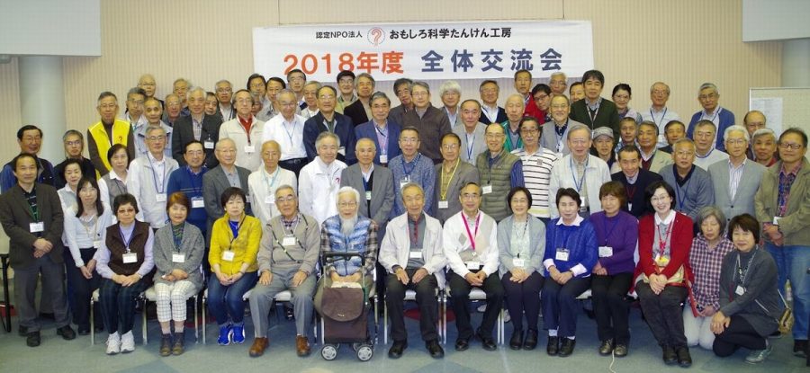 活動の地域が広くなって、たんけん工房のメンバーが増えましたので、講師同士の懇親を深めるために文化祭のような全体交流会という催しを年に1回やっています。こんなことを考えていますと試作品を発表したり、体験塾について話し合ったりしています。父兄の方や学校の先生もお誘いしています。