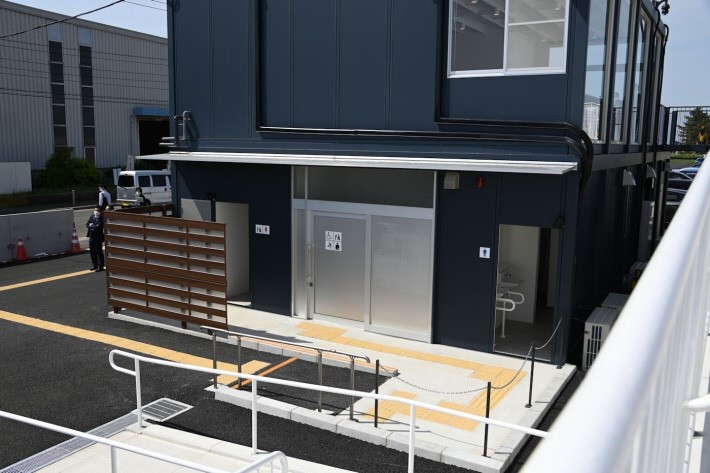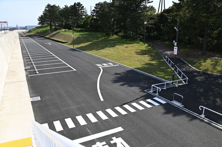 民間企業が管理・運営者となった駐車場は広く、入口から北は182台、南は72台の計254台が駐車でき、管理棟側にはバイクや自転車の駐輪場も設置されています。トイレは管理棟と南側の2カ所に設置されていました。広いエリアになりますが防犯カメラが設置され、警備員も管理棟2階事務室に常駐しているので安心です。
