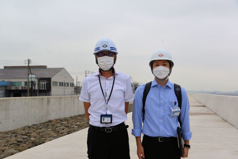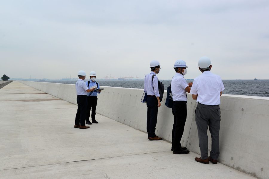 取材の段階では護岸工事は終了していたので遊歩道となる消波ブロックに上ることができましたが、伺った多くの計画はこれから実施されていくことになるのでとても楽しみです。若いころ子供たちと来たヘリポートや海辺に、今度は孫と一緒に来てみたいです。よく晴れた日には富士山がみえたり、東京湾を行き交う船舶をのんびりとみるのもいいですね。展望台のような遊歩道となる護岸から見えた海はこれまでとは違った感覚の海でした。早く区民の皆さんにも見て欲しいと思う今回の取材でした。