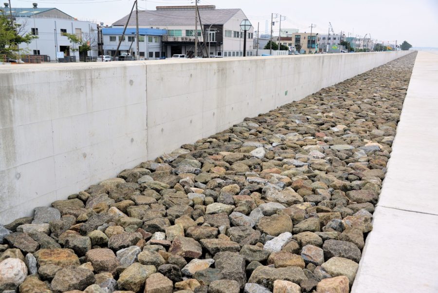 2019年9月8日夜から9日明け方にかけ関東地方を通過した台風15号は、区内の産業団地「LINKAI横浜金沢」に甚大な被害をもたらしました。想定を超えた高波により、海岸線に近い企業ほど大きな被害を受けたほか、分厚いコンクリートの護岸も一部倒壊しました。罹災した企業の中には、再建をあきらめたところも。想定を超える台風の猛威でしたが、復旧する護岸の設計の考え方として「今後発生し得る最大の高潮・高波を防護できるもの」としたため、海の見える風景が無くなってしまいました。