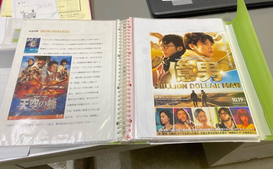 コーナーに展示できる本の数は限られているので、時間が経ったものは一般の書棚に移動しますが、集めた映画のチラシは77枚にも及び、以前展示したものはすべてファイルに収めてあります。