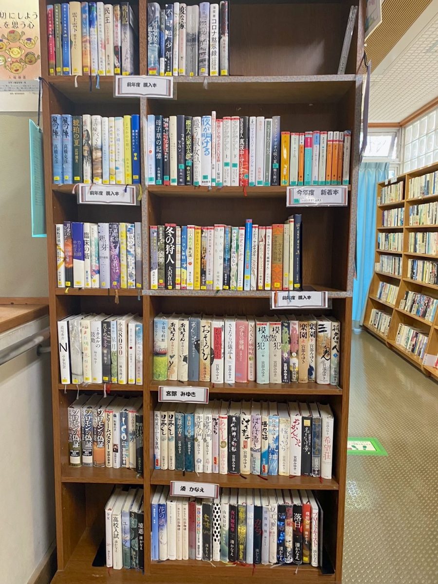 新しく入った本は、「新着本コーナー」に配架されます。人気があるので、貸し出しは5冊借りられる内の2冊までとしています。