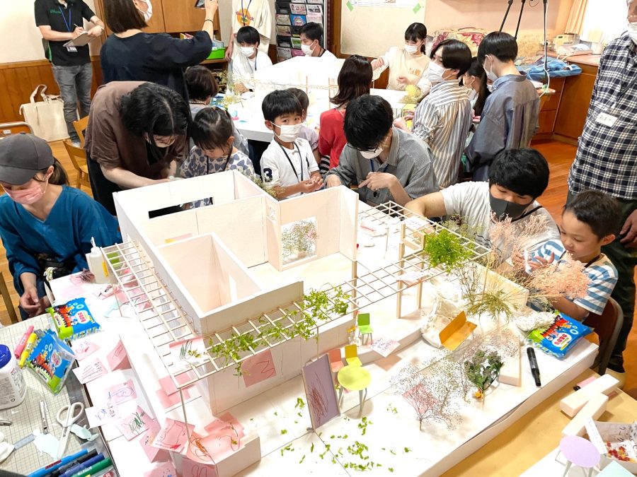 翌年の春から夏には、藤原さん、酒谷先生、酒谷研究室の学生が「こずみのANNEX」の活用について、自由に話し、模型を楽しくつくるワークショップを開催しました。町内会のみなさんや、近所の子どもから大人まで老若男女が大勢集まり、大変な盛り上がりでした。お祭りなども自粛しているこの街にとって、久しぶりの賑わいです。